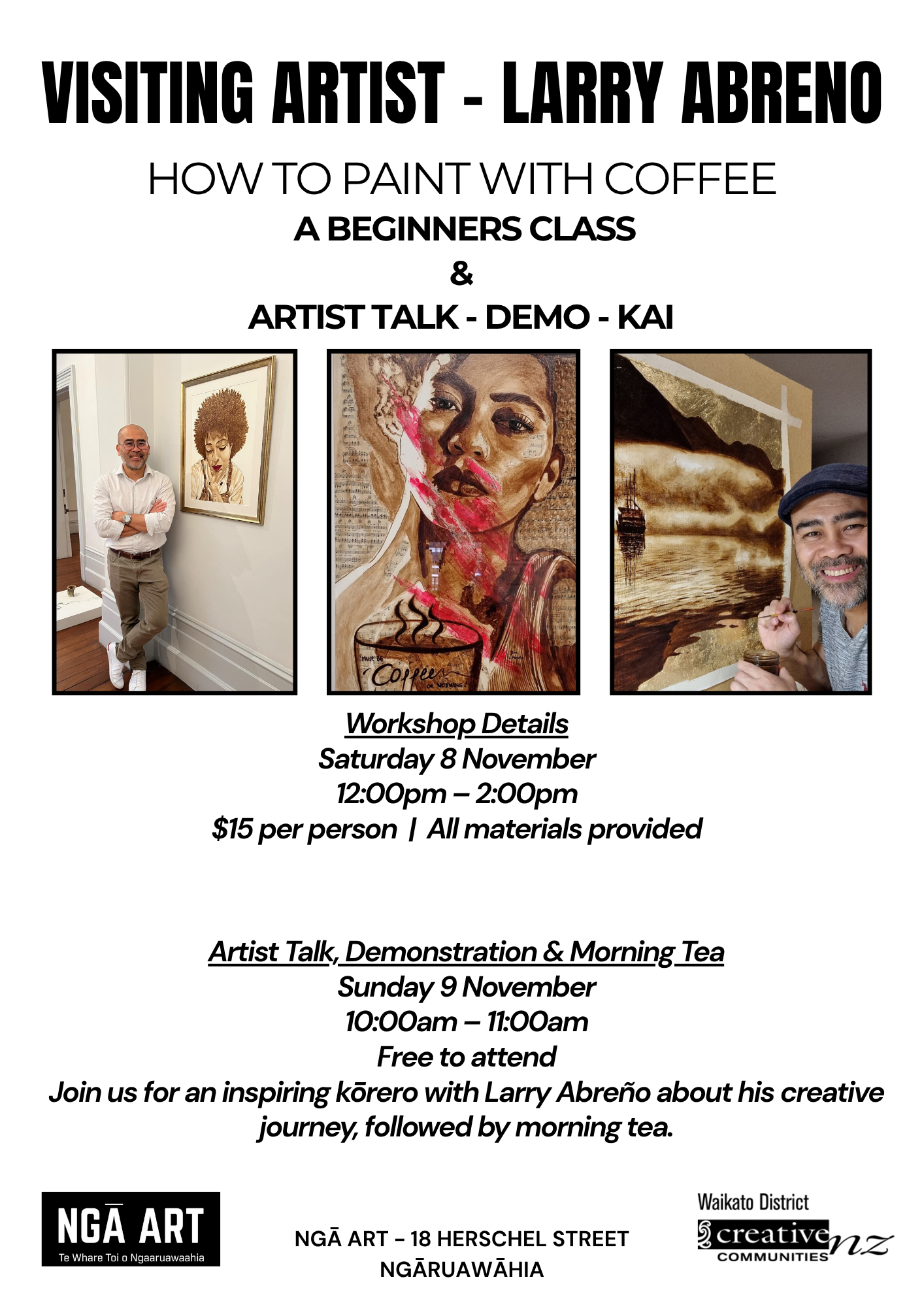 Both events will be held at NGĀ ART – 18 Herschel Street, Ngāruawāhia. We look forward to welcoming you.